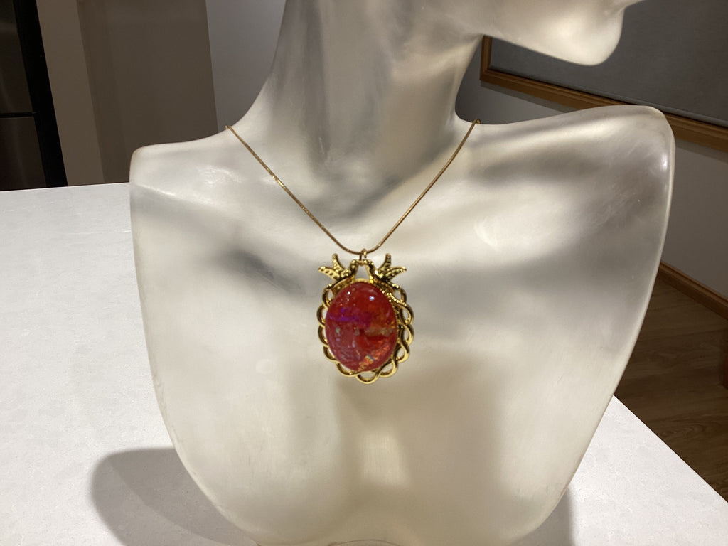 Beautifully handcrafted dichroic glass using multiple complex techniques to achieve brilliant colours. 18" 1mm snake chain provided.